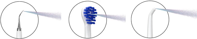 Unlike other products, our Sonic Tooth Cleaner features a unique water-floss system across all three heads: toothbrush, scaler, and flosser - for a deeper, gentler clean.